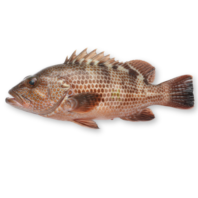 Robust body shape, large mouth and lips—a predator that preys on trapped fish and crustaceans. Grouper typically grows between 40 cm to over 1 m depending on species. Medium-size (~1 kg) specimens yield firm, mild white meat with clean flavor and minimal fishiness. The skin is smooth and the flesh flakes neatly under gentle heat.